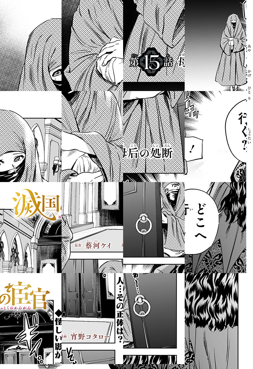 <隔週月曜更新!最新2話無料>宦官。それは、秘密の花園・ハレムに仕えることが許された唯一の“男”。国を揺るがす大動乱は、若き宦官・ジャフェルと見目麗しき3姉妹の出会いから始まる…!『終末のハーレム』宵野コタローと『英雄機関』蔡河ケイの新タッグが紡ぐ、超美麗異国サスペンス! [JC2巻発売中]