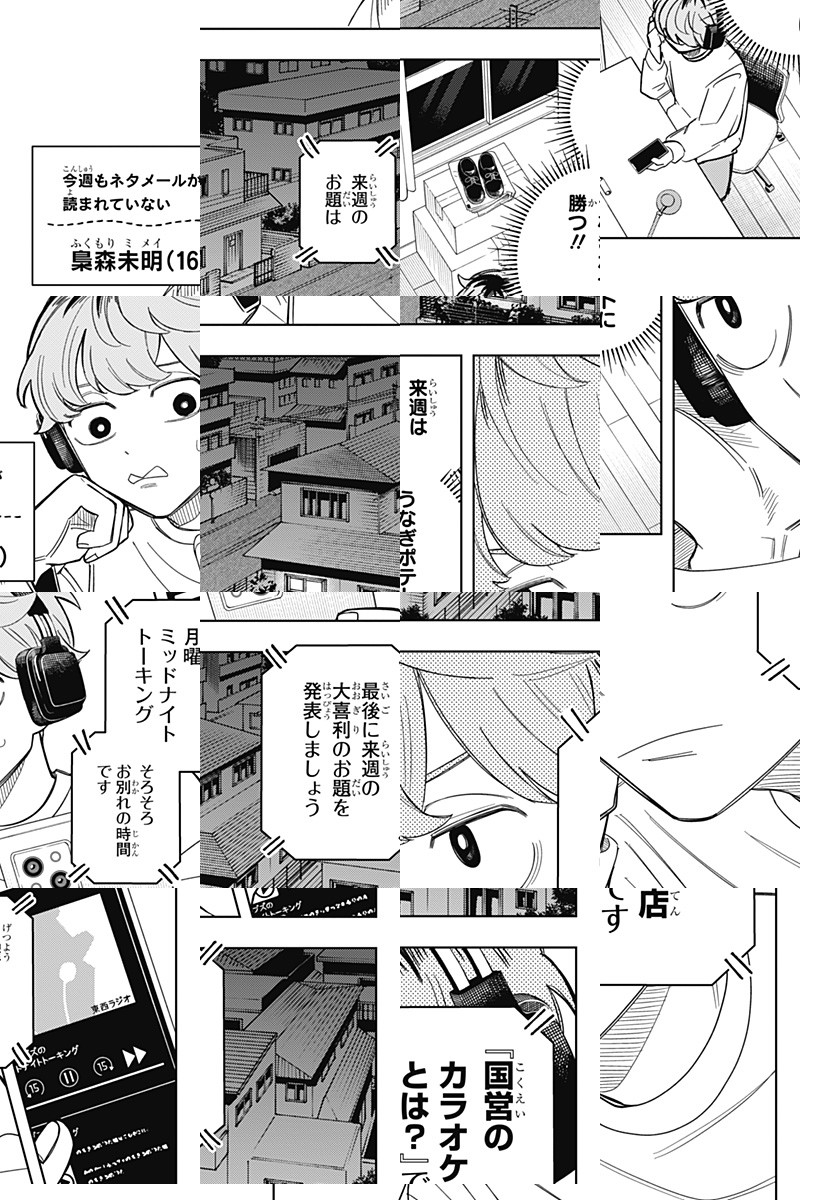 深夜ラジオが共通の趣味。なんだか不思議で面白い、同じクラスの水尾くらげ。その正体は、ハガキ職人!?梟森ミメイは、くらげに負けじとハガキに挑戦!リスナー仲間でライバル関係、真夜中に紡がれる青春模様――ラジオラブコメディON AIR!!