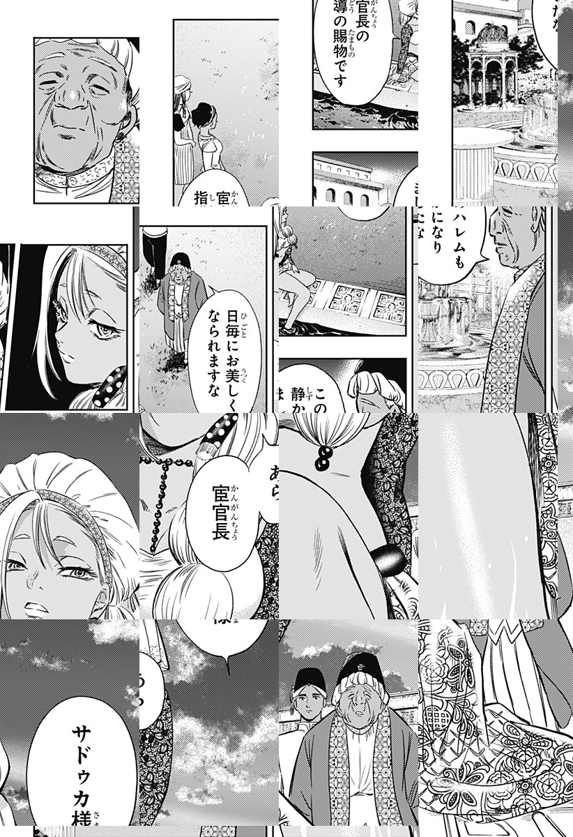<隔週月曜更新!最新2話無料>宦官。それは、秘密の花園・ハレムに仕えることが許された唯一の“男”。国を揺るがす大動乱は、若き宦官・ジャフェルと見目麗しき3姉妹の出会いから始まる…!『終末のハーレム』宵野コタローと『英雄機関』蔡河ケイの新タッグが紡ぐ、超美麗異国サスペンス! [JC2巻発売中]