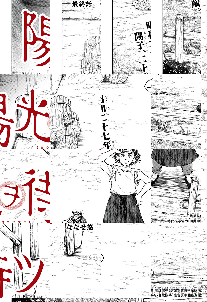 <完結済み>昭和16年(1941年)夏、滋賀県・信楽。陶芸の才能あふれる少女・松原陽子は、信楽焼の陶芸作家になる夢を膨らませていた。この後信楽焼に待ち受ける、数奇な運命を知らずに―終戦80年目に少年ジャンプ+が贈る、知られざる太平洋戦争記。 [JC上下巻発売中]