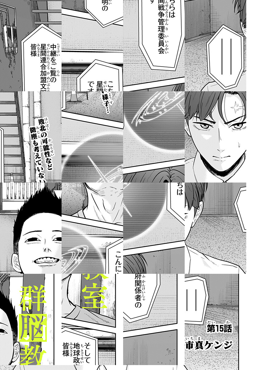 <隔週水曜更新>親友も、好きな子も、クラスメイトは全員、脳だけにされてしまった。A先生と名乗る宇宙人の彼女は、地球を守る為には主人公・筒野悟希とそのクラスメイトたちの群脳が必要だと語る。クラスメイトたち、そして地球を救うべく教室に一人残された筒野に課された試練とは――。ジャンプが誇る鬼才が贈る衝撃のサスペンス群脳戦記! [JC2巻2/4発売]
