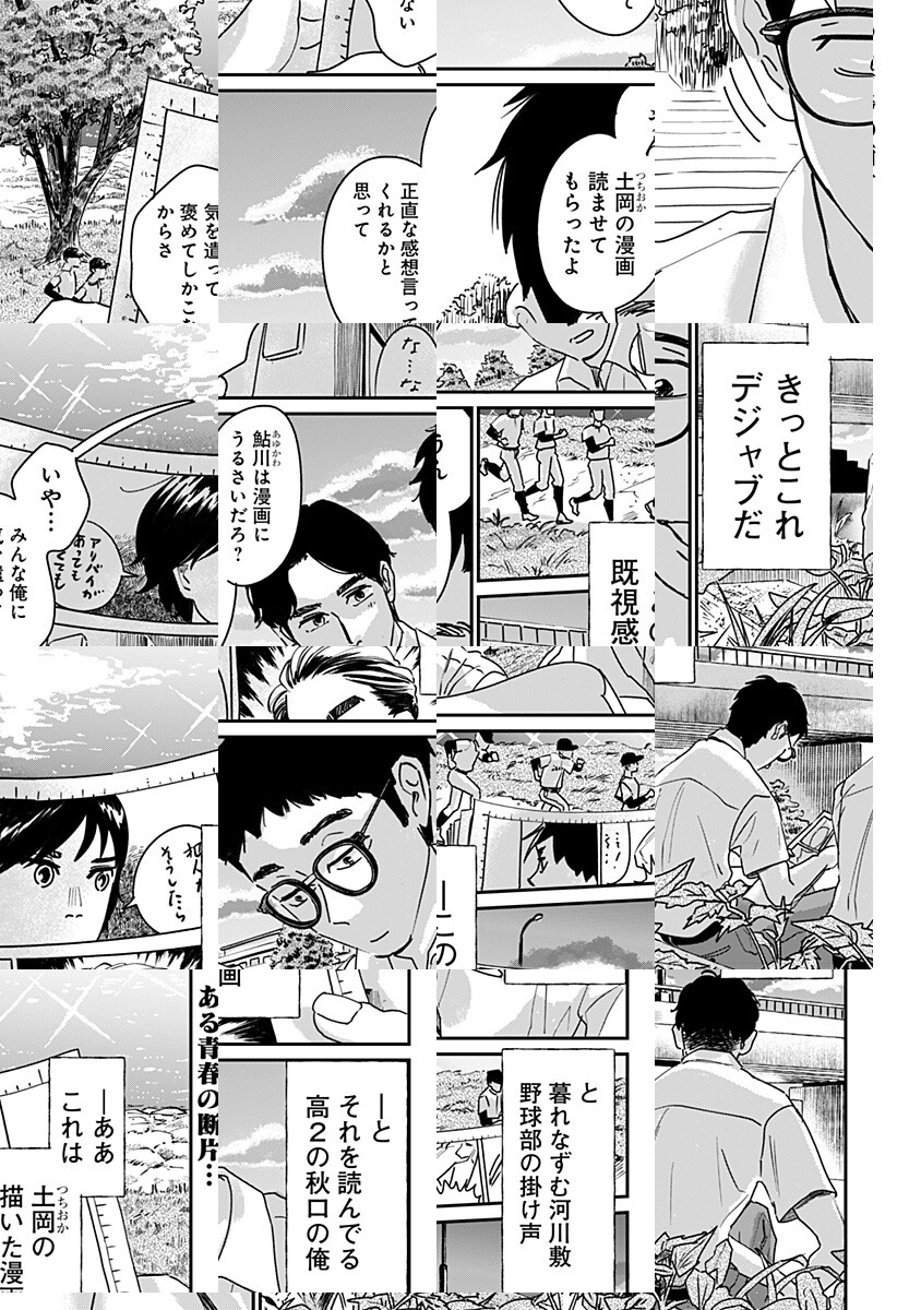 漫画家志望の高校生・鮎川は友達の土岡が描いた漫画を酷評する。数年後、同窓会にて鮎川は土岡と久しぶりに出会い…