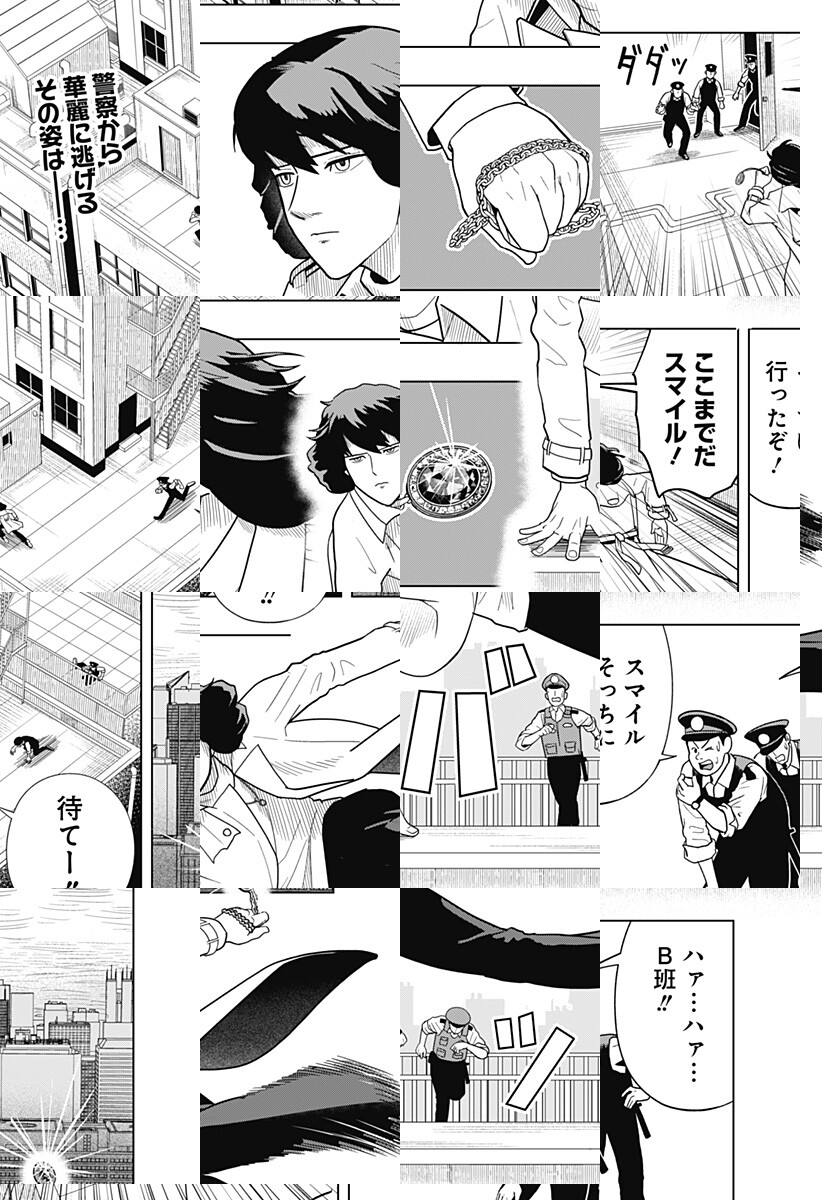 "笑わない怪盗"スマイルは、今日も退屈しのぎに宝物を盗んでいた。逃げ足の速いスマイルに手を焼く警察だったが、ある日新米警察官の権左がスマイルに挑むことに…!「尻デカ大名、江戸へ征く」の新鋭が描く逃走アクション!