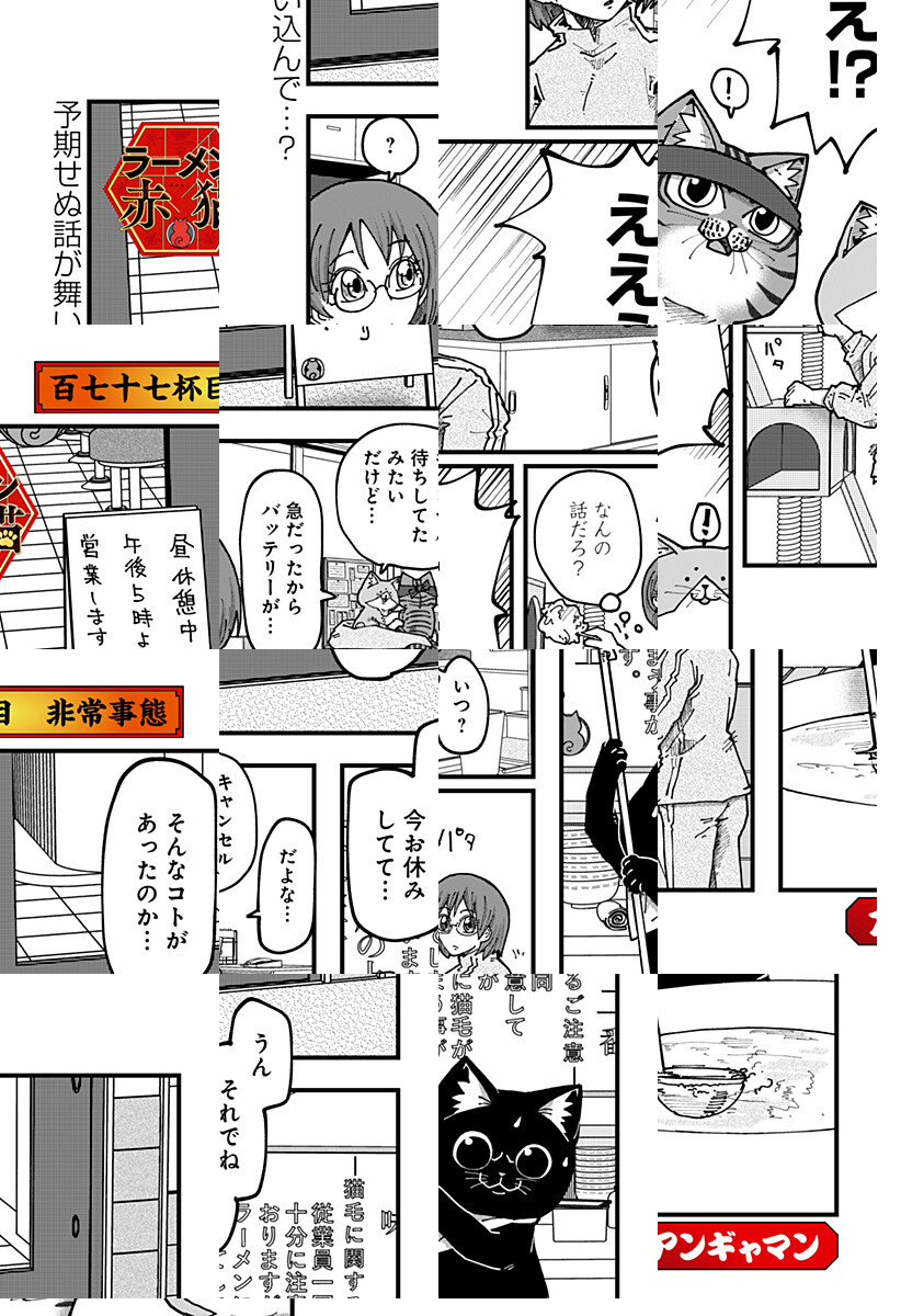 <毎週月曜更新!最新2話無料>アニメ好評配信中! 人間のいない、猫だけが営むラーメン屋に面接に来た珠子。猫の店長に猫好きか聞かれ、珠子は正直に犬派と答えるとあっさり採用される。しかし仕事内容はラーメン屋ではなく、猫のお世話係で…!? [JC13巻発売中]
