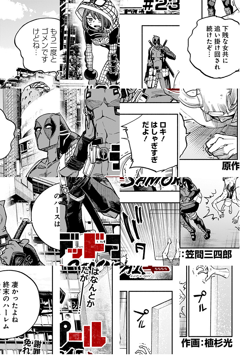 <隔週木曜更新>約4年の月日を経て、あの無責任ヒーローがジャンプ+についに帰還!好き放題に暴れまくった結果、SNSを荒らしまくり多方面に謝った問題作がパワーアップをして復活!!ジャンプ+編集部 & MARVELよ、、、正気か!?どう転ぶかわからないハチャメチャなデップーをご堪能あれ!! [JC4巻3/4発売予定]