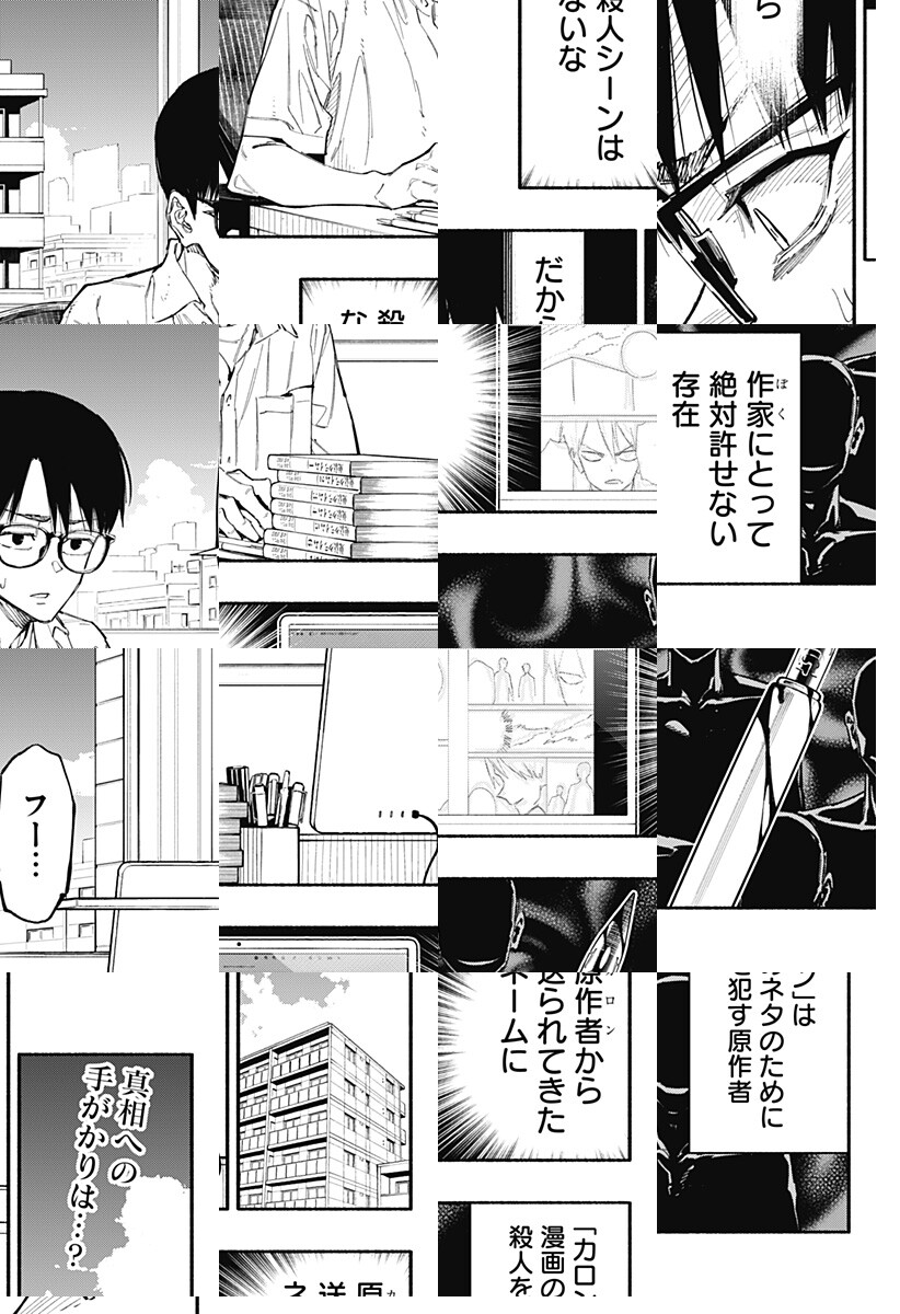 <毎週水曜更新>人気漫画『東京クライム』の作画担当・灰根樹。正体不明の原作者・カロンと連載を共に進める中、樹は偶然“ネーム通りの殺人事件”が起きたことを知る。その瞬間から、彼はカロンへの疑念と恐怖に飲み込まれていく――。 [JC1巻4/3発売予定]
