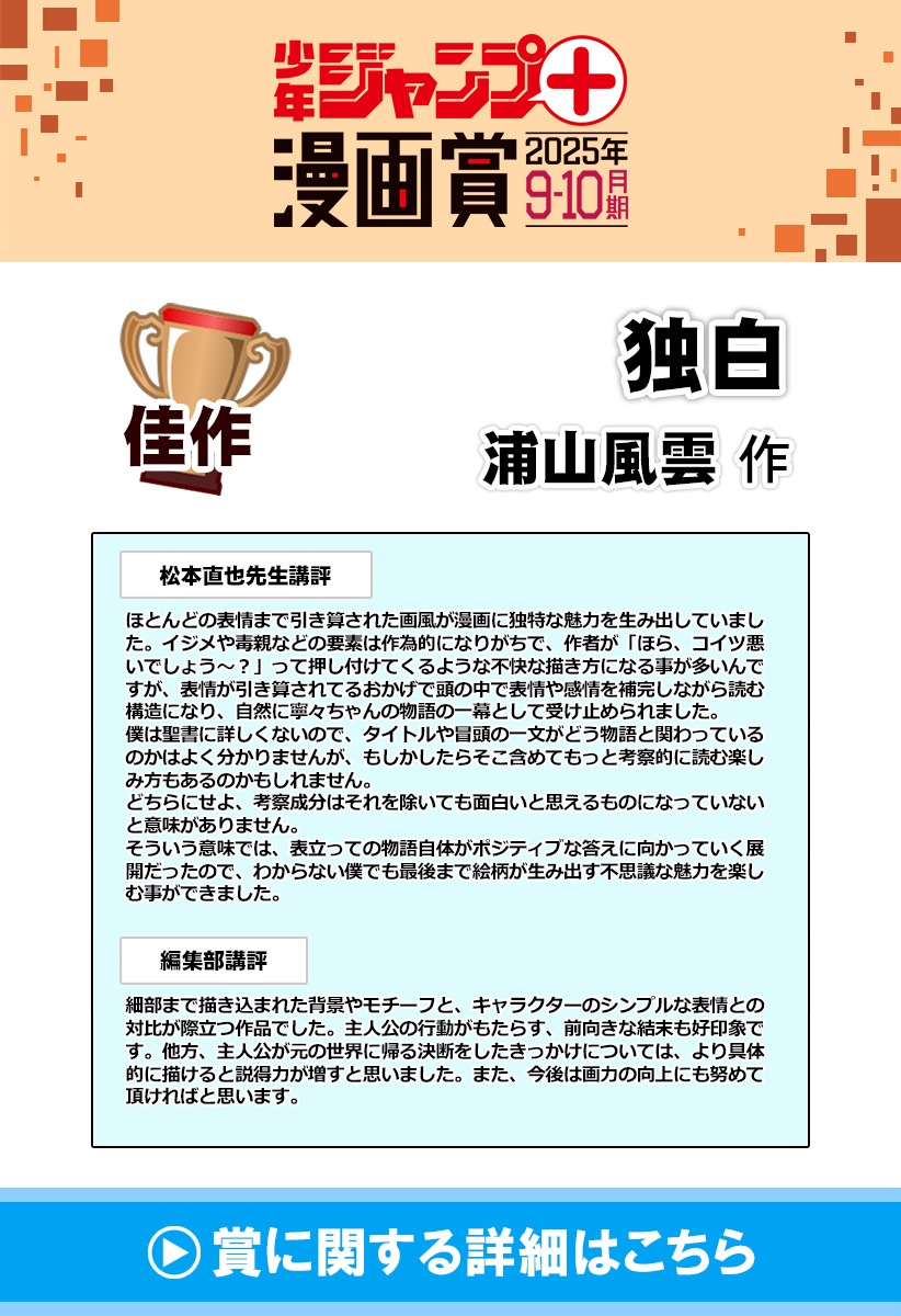 独白/ジャンプ+漫画賞 2025年9-10月期