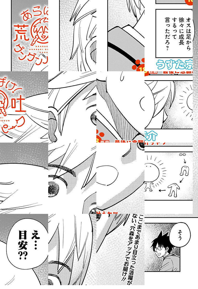 <隔週金曜更新>生き物大好きな少年、穴森胃成16歳。転校初日、森で出会った不思議生物に襲われるも謎の人間嫌い男、荒吐グンゼに助けられる。その出会いが穴森胃成を怒涛の学園生活へと巻き込んでいく!? うすた京介、渾身の不思議生物ギャグ開幕――!! [JC1巻発売中]