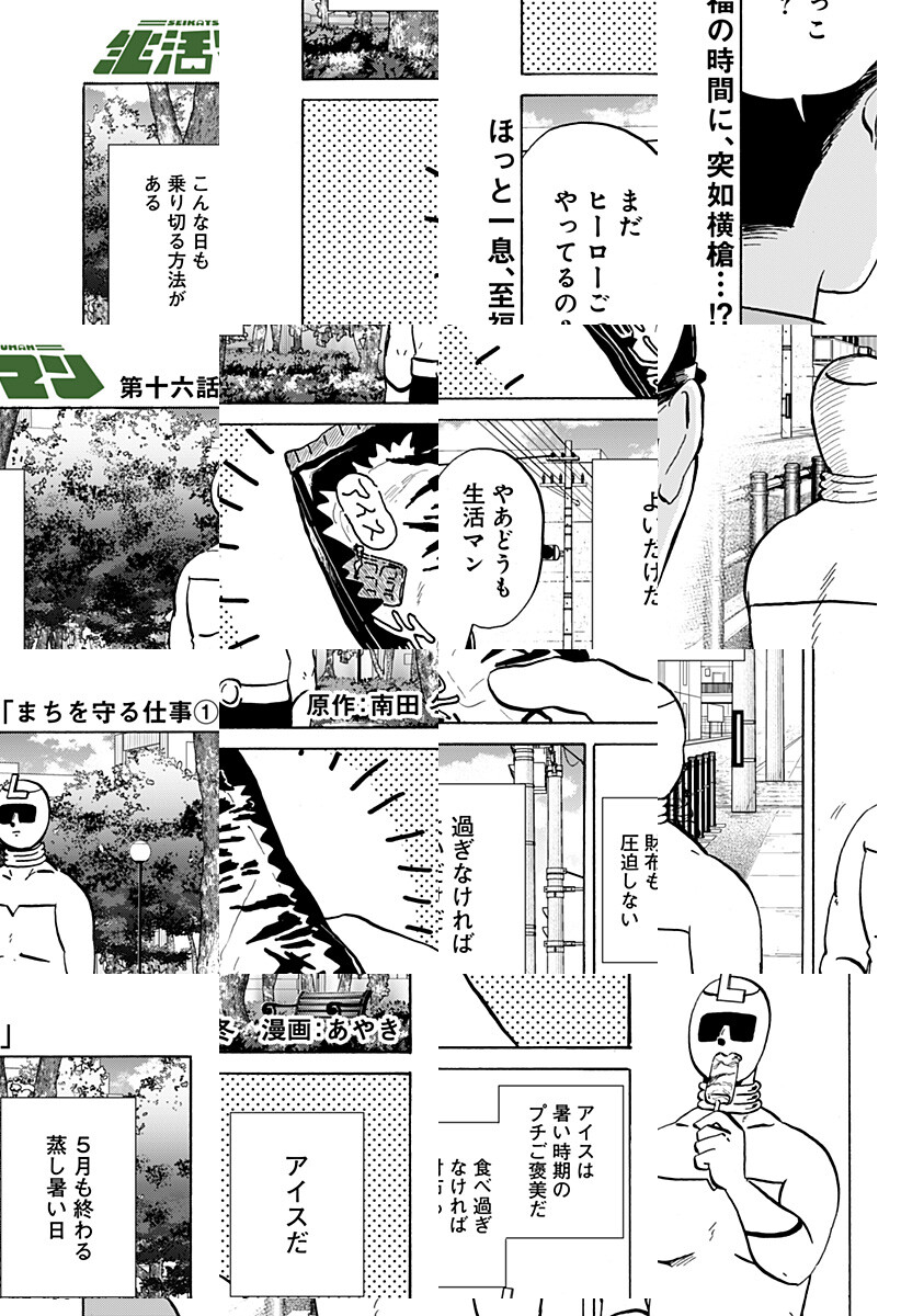 <毎週土曜更新>バイトとヒーローの二重生活を送る「生活マン」。今日も彼は、バイトでミスをしたり、感謝されたり、困った人たちのもとへ駆けつけて悪い人をやっつけたりする!! 最強“愛され”ヒーローの日常密着コメディ!! [JC1巻4/3発売]