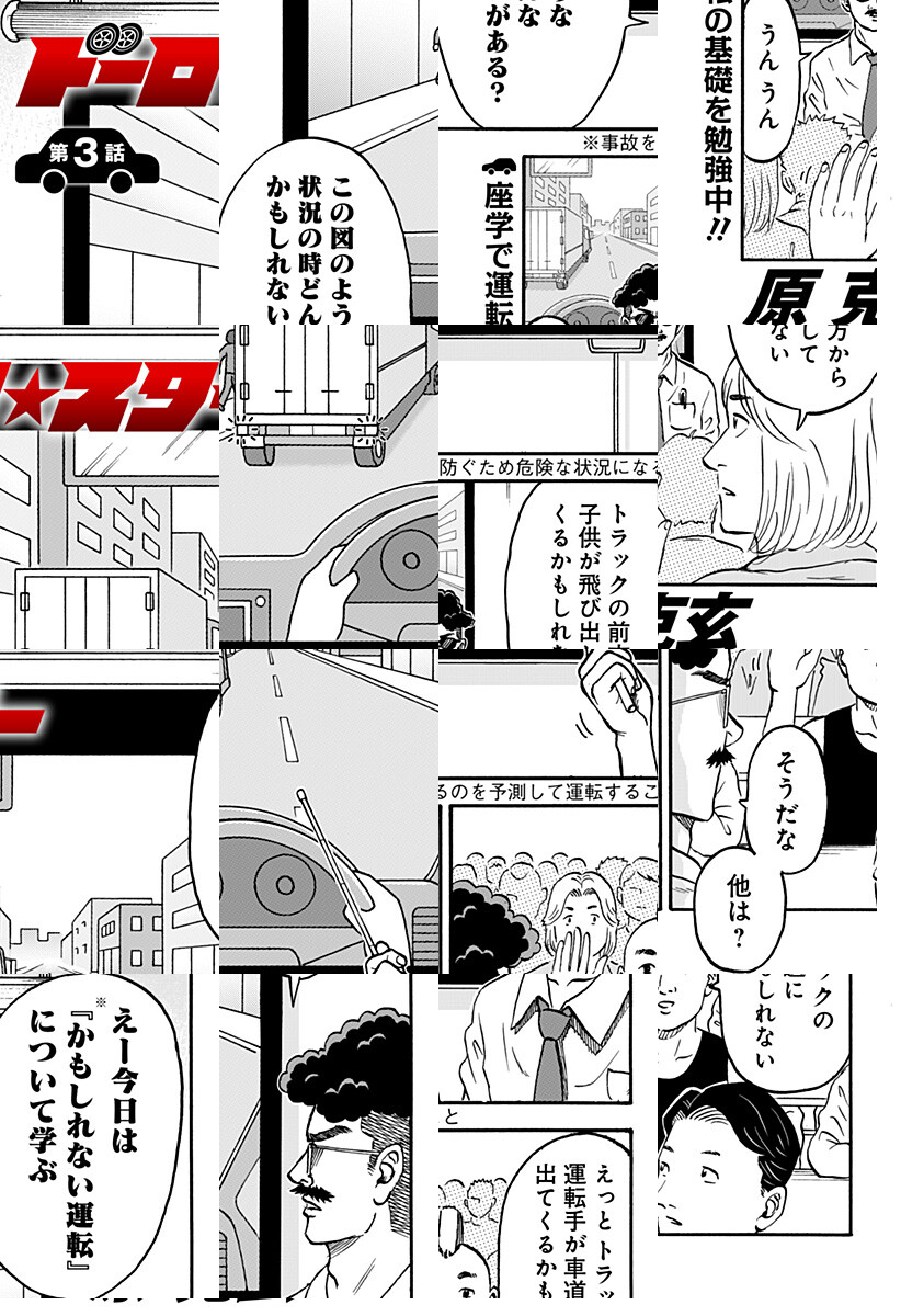 <隔週火曜更新>全ての車を乗りこなす事ができる“超絶免許”を手にいれる為、まきびし自動車教習所に通い出した一星。幻の車“カウンタッ君”に乗る為、地獄の教習所生活が始まる!? 『るみちゃんの事象』などで知られる原克玄先生、渾身の自動車教習所ギャグ開幕!!
