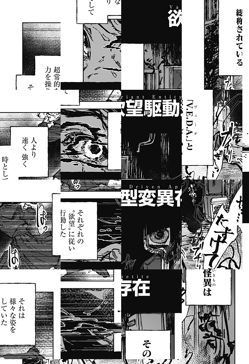 欲望駆動型変異存在――通称「V.E.D.A」。その協力個体の運用を任されたササキは、ある日エリというV.E.D.Aの監視役に指名される。しかもその指名は、エリ本人からだった。理由もわからぬまま、ササキはエリと仕事をこなすことになるが――。