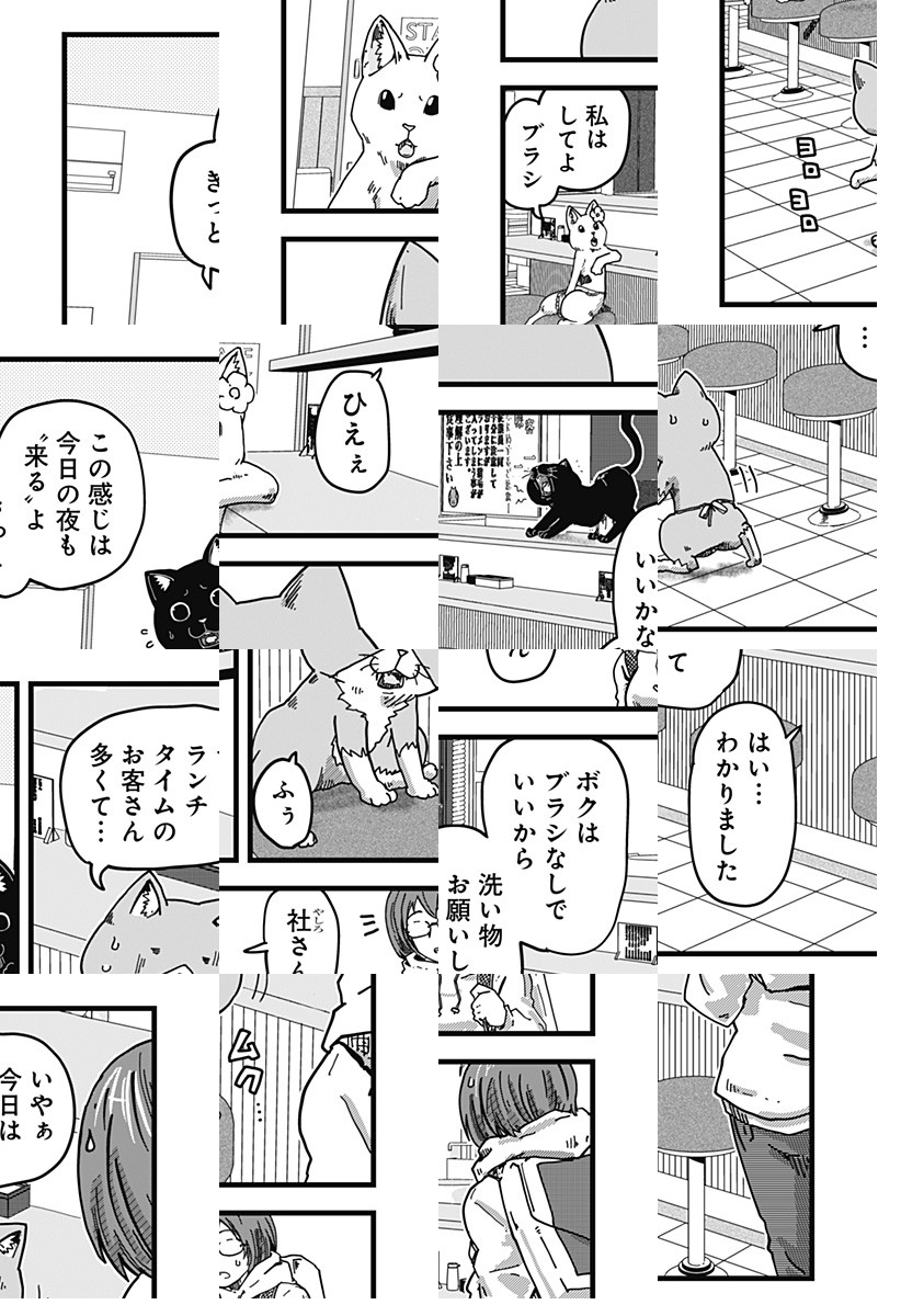 <毎週月曜更新!最新2話無料>アニメ好評配信中! 人間のいない、猫だけが営むラーメン屋に面接に来た珠子。猫の店長に猫好きか聞かれ、珠子は正直に犬派と答えるとあっさり採用される。しかし仕事内容はラーメン屋ではなく、猫のお世話係で…!? [JC14巻4/3発売予定]