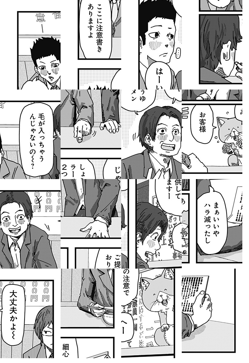 <毎週月曜更新!最新2話無料>アニメ好評配信中! 人間のいない、猫だけが営むラーメン屋に面接に来た珠子。猫の店長に猫好きか聞かれ、珠子は正直に犬派と答えるとあっさり採用される。しかし仕事内容はラーメン屋ではなく、猫のお世話係で…!? [JC13巻発売中]