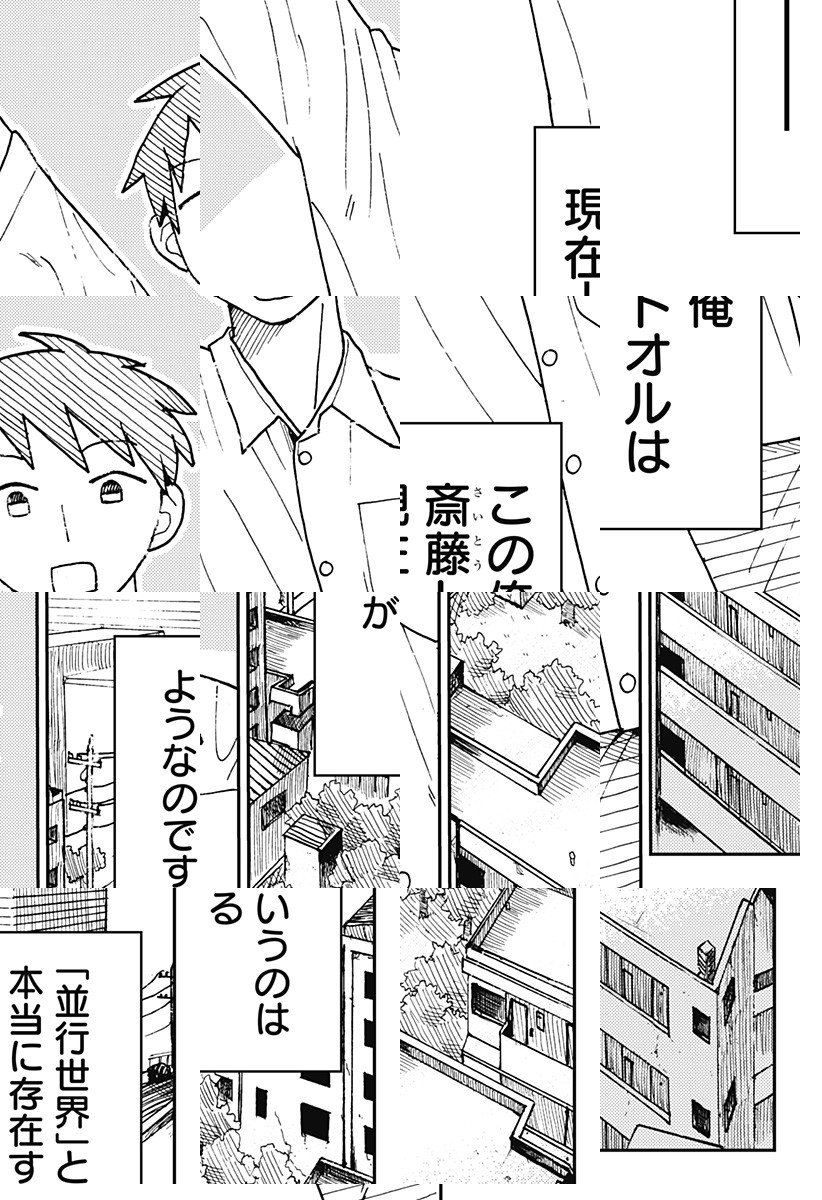 すべてに於いて平々凡々の齋藤トオルは、人類を滅亡から救うための使者に選ばれた!?もしも“フツウ”の男が世界を救うヒーローになったら…を描いた痛快なSFコメディ読切!!『アフタースクールメイト』海野先生の新たな境地を刮目せよ――!!