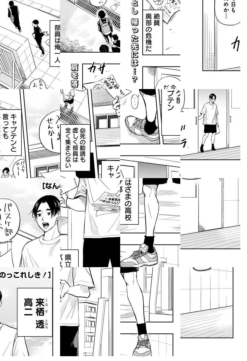 来栖透はバスケ部キャプテン。といっても部員は彼一人、必死の勧誘も虚しく廃部の危機に瀕している。ある日彼は、バスケットゴールに頭から突き刺さっている少年と出会う。異常なジャンプ力を持つ少年は、バスケ部に入りたいと言うが…!?