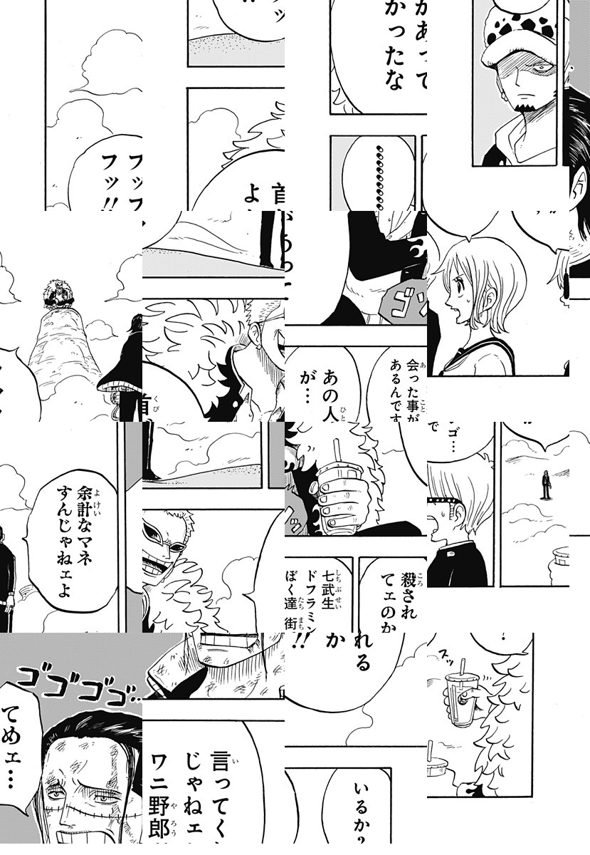 <月2回更新>青春&バトル&コメディの公式スピンオフ!ルフィくんの活躍はもちろん、ローくんが犬を愛でたり、キッドくんは善人になったり、ルッチくんはオタクに変装したり……!?原作では見ることのできないシーンが満載!! [JC10巻発売中]