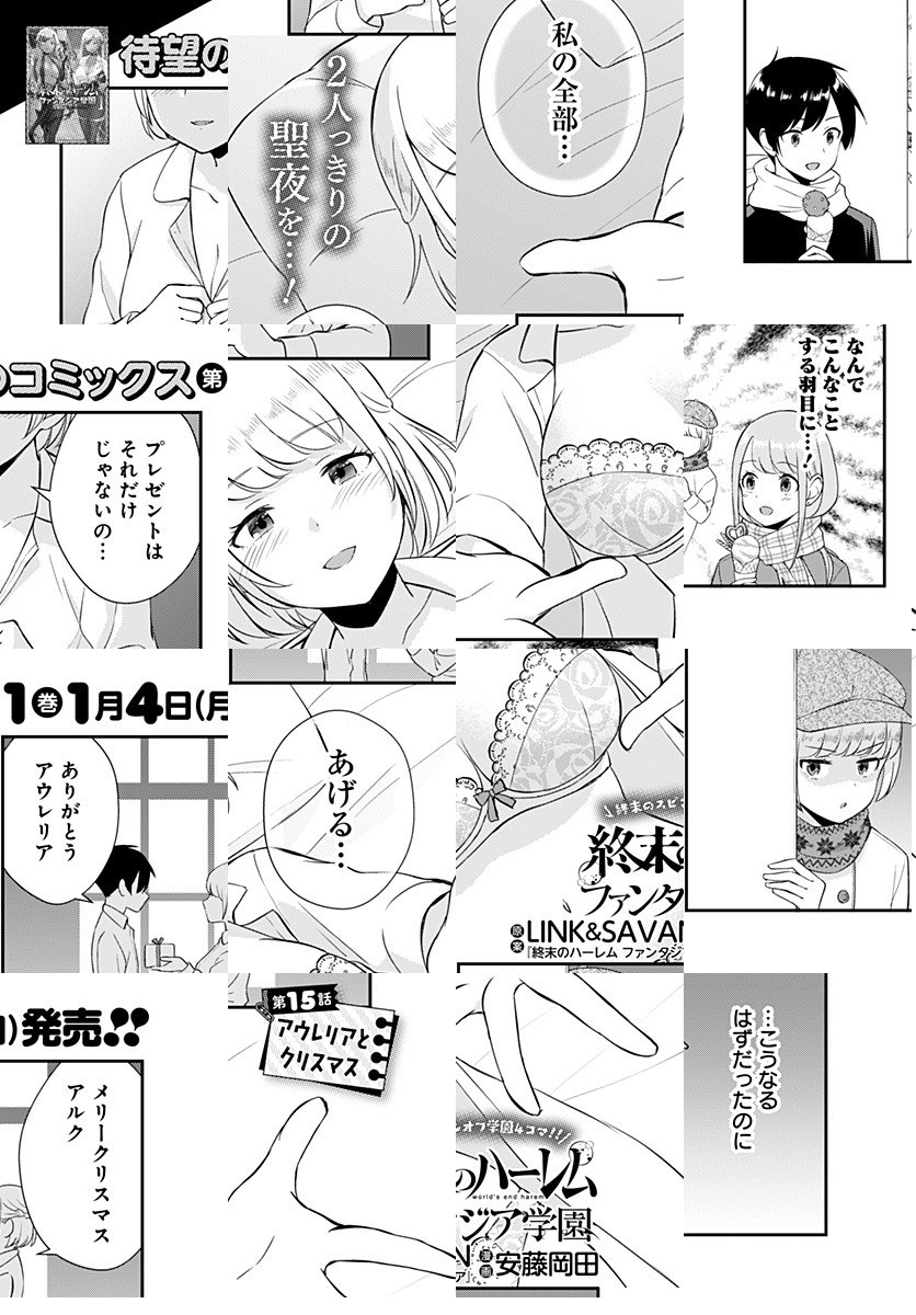 <完結済み>『終末のハーレム ファンタジア』公式スピンオフ4コマ始動!!舞台は現代。想い人のアウレリアと同じ学校に進学すべく高校受験に挑んだアルクはあえなく不合格、アウレリアと離れ離れになってしまう。しかし、入学先は女子生徒だらけの“ハーレム学園”で……!? [JC全3巻発売中]