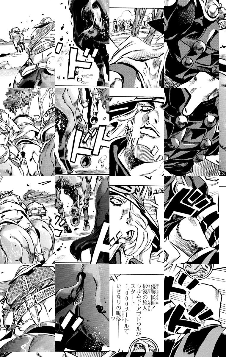 <完結済み>1890年、アメリカで世紀の大レース『SBR(スティール・ボール・ラン)』が開催された。総距離約6,000km、人類史上初の乗馬による北米大陸横断レースである!優勝賞金5千万ドル(60億円)をめざし、屈強な冒険者たちの戦いが今始まった!