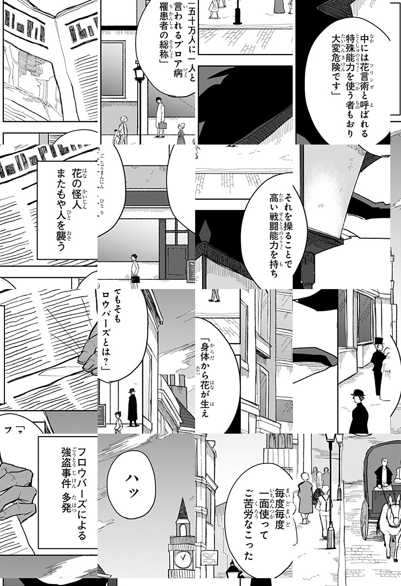 花言葉になぞらえた能力が開花する病の罹患者「フロウバーズ」。人間扱いされず戦闘に使役される”極楽鳥花”のソランは、同じ境遇にあり人間へ憎しみを抱く者たちとの戦いに巻き込まれ…!?