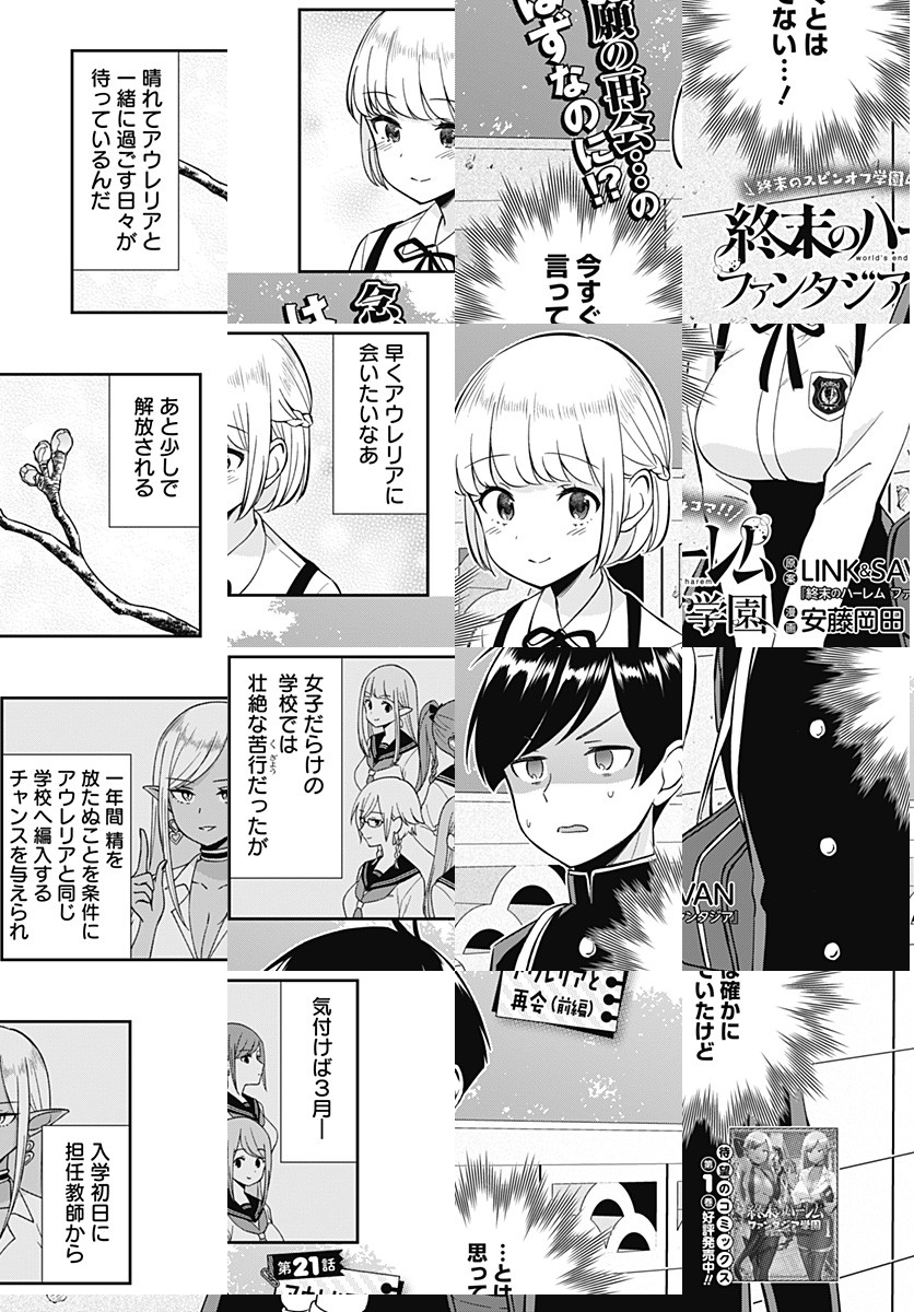 <完結済み>『終末のハーレム ファンタジア』公式スピンオフ4コマ始動!!舞台は現代。想い人のアウレリアと同じ学校に進学すべく高校受験に挑んだアルクはあえなく不合格、アウレリアと離れ離れになってしまう。しかし、入学先は女子生徒だらけの“ハーレム学園”で……!? [JC全3巻発売中]