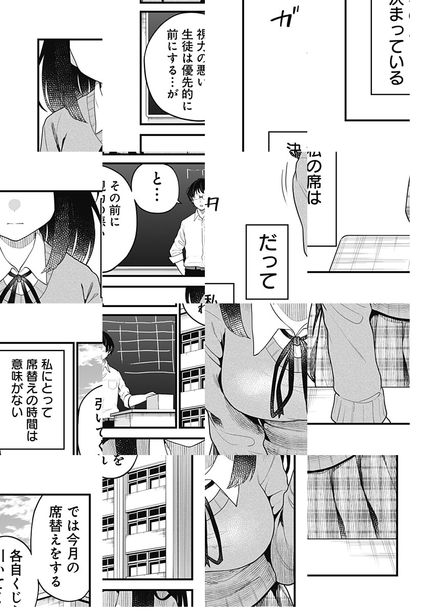 視力の悪い私。でも眼鏡をかけてしまったらこの恋は遠くなってしまう。一番前の席、先生とのこの距離。私の恋の行方は…。恋する乙女と先生と友達、恋と友情と眼鏡の話。特別読切33ぺージ。
