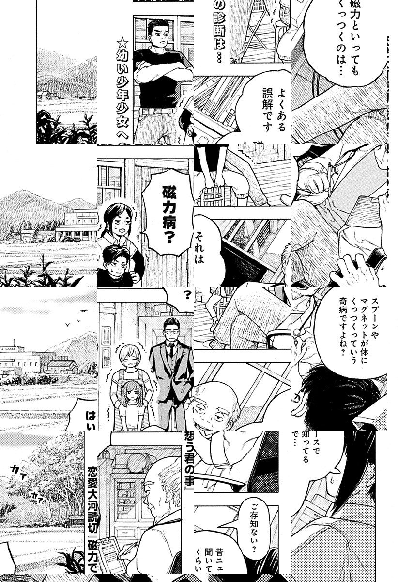 男女の間に発生する奇病「磁力病」。同い年の恵と俺はごく普通の子供だったのに、「男女が磁力でくっつく」この病のせいで人生全てがメチャクチャ面倒くさいことになって…。特殊な男女2人の『少年期から大人まで』の大河物語読切。