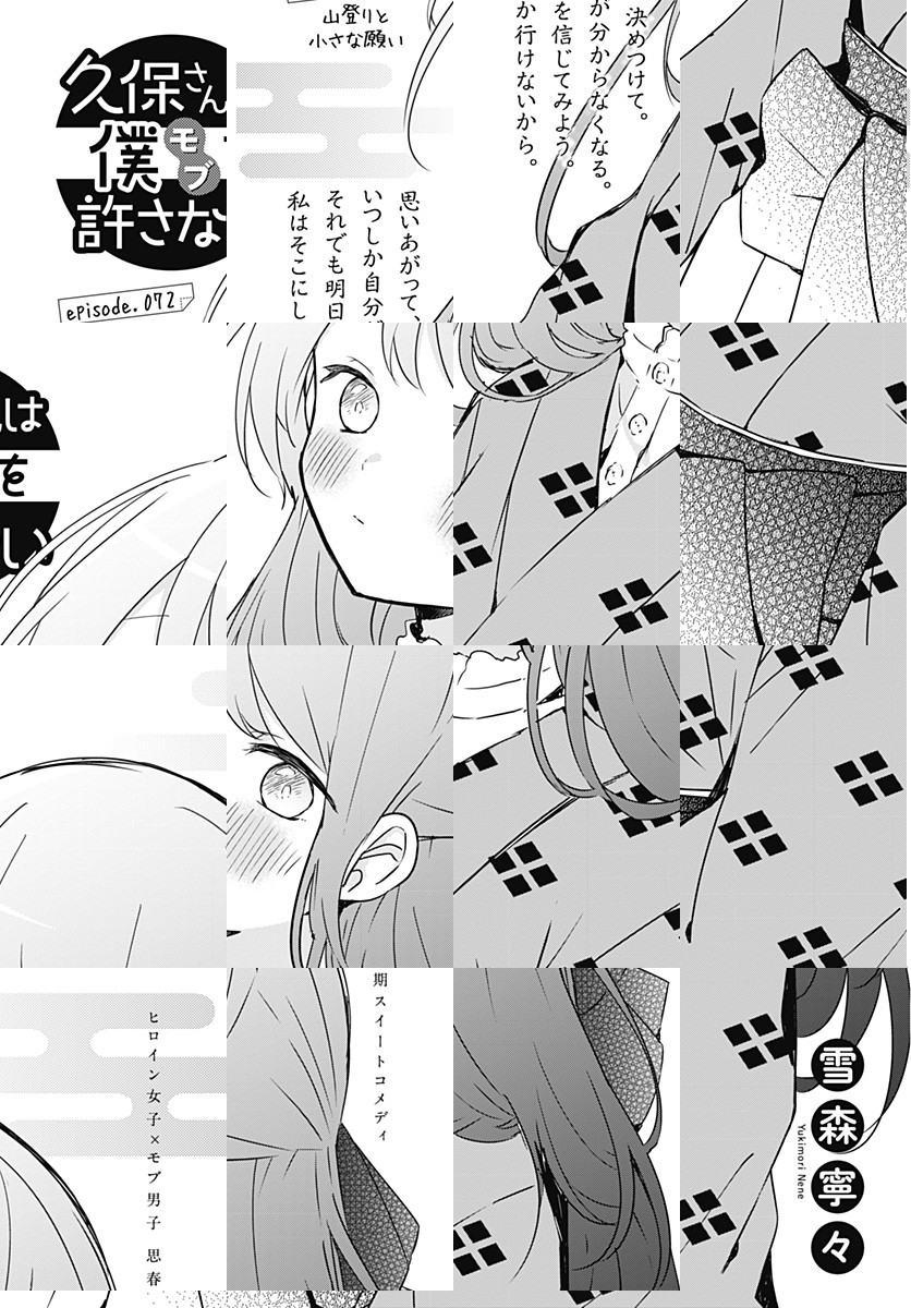 <完結済み>各種動画配信サイトにてTVアニメ好評配信中! 高校1年生・白石純太は隣にいても気づかれない、存在感ゼロの“モブ男子”。ところがクラスメートの“ヒロイン級”美少女・久保さんだけは彼を目ざとく見つけて、今日もちょっかいをかけにやってくる――。誰だって誰かの特別になれる。でもその感情に「恋」と名が付くには、まだ二人は少しだけ幼い。“ラブコメディ”の2歩手前、ヒロイン×モブの“思春期スイートコメディ”!!