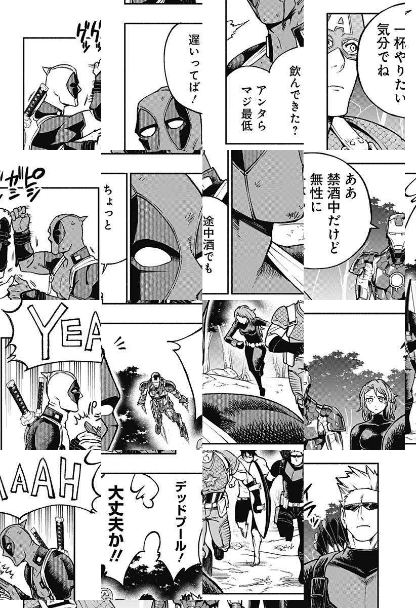 <完結済み>MARVELから少年ジャンプ+に殴り込み!?アメコミヒーローの中でも特にハチャメチャな無責任ヒーロー「デッドプール」がついに連載化!!!!アベンジャーズを引き連れて、ジャンプキャラまで巻き込んだなんでもありのスーパーコラボマンガ! [JC全2巻発売中]