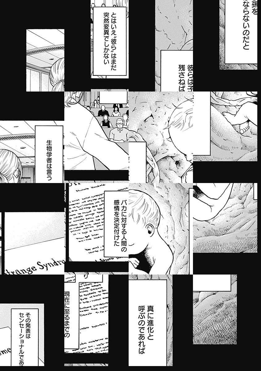 普通の日本、普通の東京。ただ、ごく少数の人間が「バカ」という化け物に突然変異し駆除される世界。クラスでも孤立しがちな女子高生・須永文子は、そんな「バカ」の画像を集める奇矯な趣味の持ち主だったが、ある日みずからも「バカ」になってしまい、人間から追われる事に…!