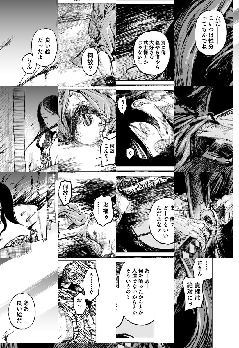 少年ジャンプ+お仕事漫画賞 準大賞受賞作。推し絵師を日本一にしたい男が推し以外の絵師を皆殺しにしようとする話。