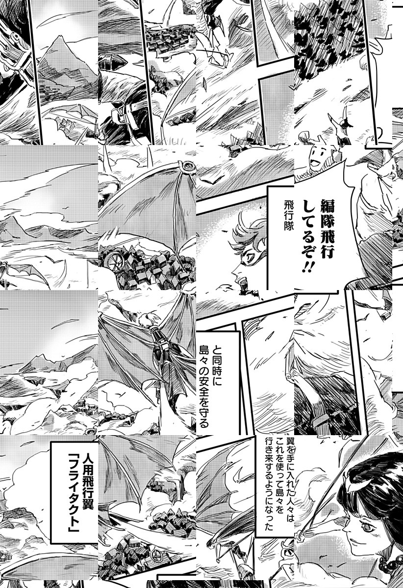 天空の島に住み、人口の翼を自由に操る人々。そんな世界の中、ある少年はここでは超珍しい『高所恐怖症』で…。勇気と翼はいつ開く!?中国の新星作家が放つ天空空想冒険読切!