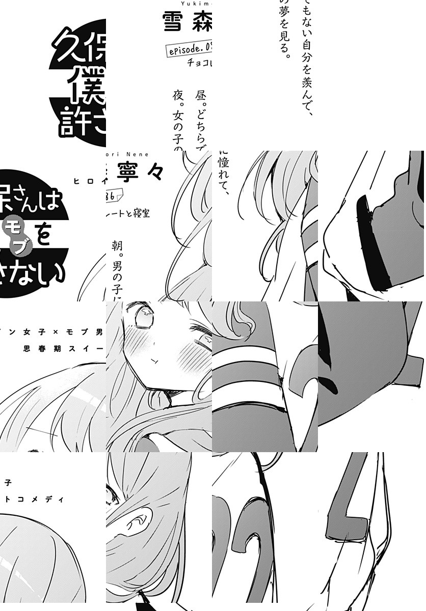 <完結済み>各種動画配信サイトにてTVアニメ好評配信中! 高校1年生・白石純太は隣にいても気づかれない、存在感ゼロの“モブ男子”。ところがクラスメートの“ヒロイン級”美少女・久保さんだけは彼を目ざとく見つけて、今日もちょっかいをかけにやってくる――。誰だって誰かの特別になれる。でもその感情に「恋」と名が付くには、まだ二人は少しだけ幼い。“ラブコメディ”の2歩手前、ヒロイン×モブの“思春期スイートコメディ”!!