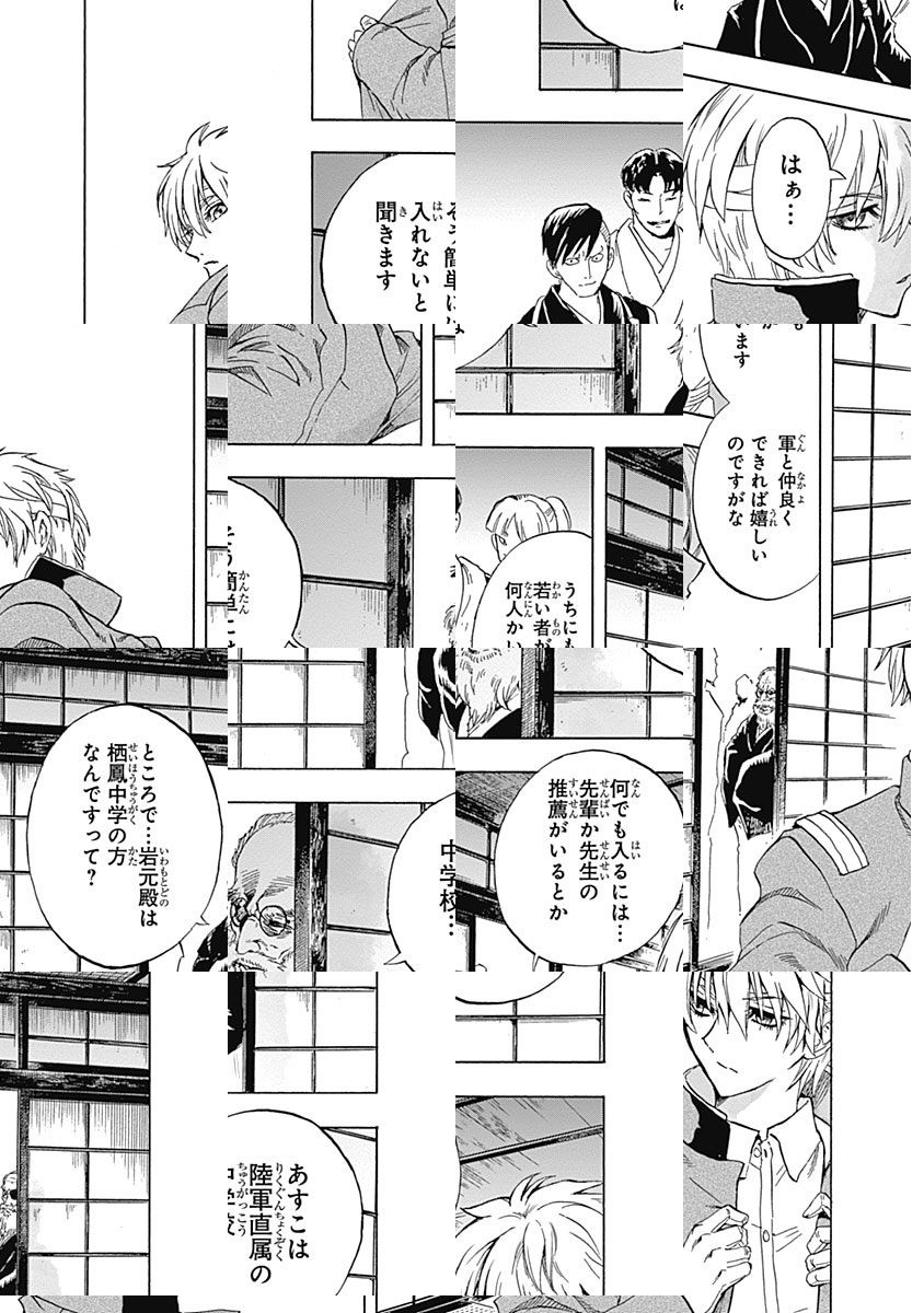 一九一〇年代。陸軍直属・栖鳳中学に通う岩元胡堂は、軍の訓令により、全国各地の超常現象を調査していた。“黒い雪”が降ると噂される村で、出会った特殊な力を持つ少年…。能力を病気だと思いこむ少年に、使い途を示した岩元は自分との共通点を告げ、彼に学園の推薦状を差し出す――。訪れた任務先で、岩元を待ち受ける様々な怪奇(であい)。彼らの時代を解き明かす、浪漫奇譚開幕!!