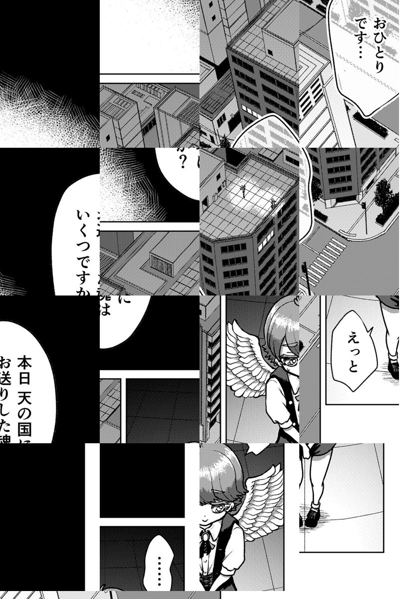 天使、それは現世に彷徨う魂を「天の国」へ連れていく役目。天使の一人である主人公が出会った少女の魂は一筋縄ではいかず、逃げられてしまう。少女が現世に残す未練がわかる時、天使の役割が問われる…美しい天使と少女の最期を彩るヒューマンドラマバトル!