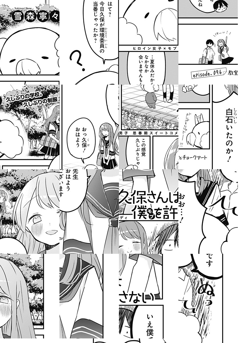 <完結済み>各種動画配信サイトにてTVアニメ好評配信中! 高校1年生・白石純太は隣にいても気づかれない、存在感ゼロの“モブ男子”。ところがクラスメートの“ヒロイン級”美少女・久保さんだけは彼を目ざとく見つけて、今日もちょっかいをかけにやってくる――。誰だって誰かの特別になれる。でもその感情に「恋」と名が付くには、まだ二人は少しだけ幼い。“ラブコメディ”の2歩手前、ヒロイン×モブの“思春期スイートコメディ”!!