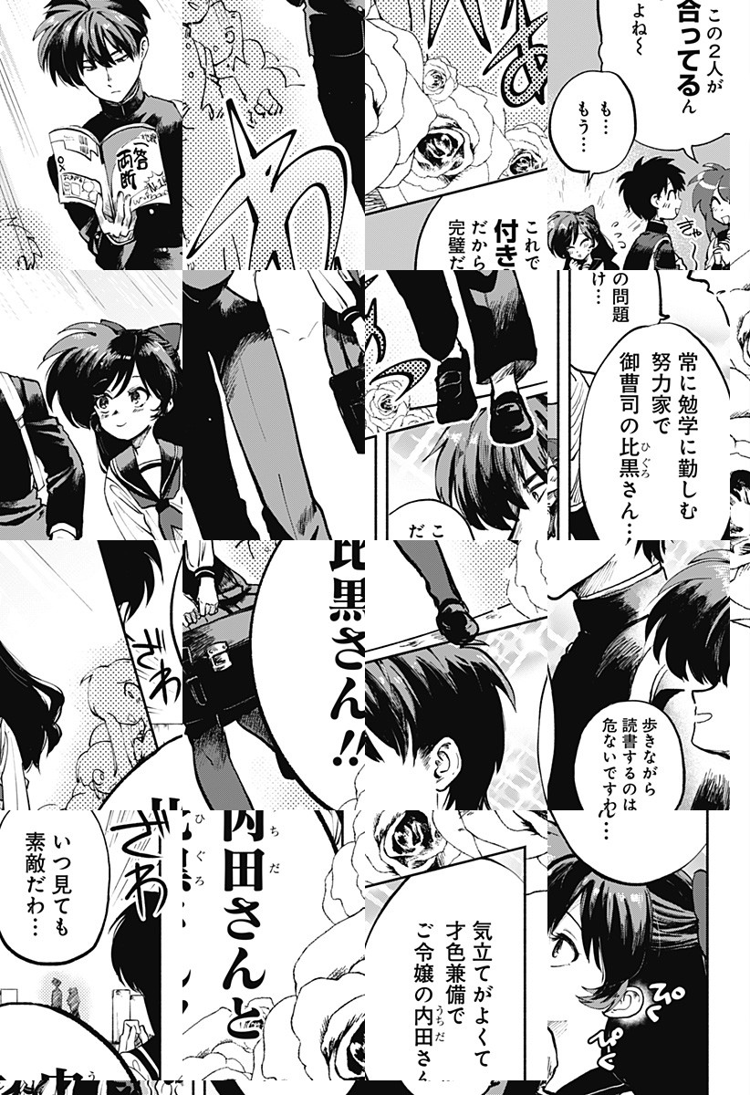 才色兼備なご令嬢・内田と、努力家の御曹司・比黒は理想の恋人と校内で羨ましがられていた。しかし、比黒は付き合っていないと関係を否定。教室は法廷に変わり内田は「交際隠蔽」を起訴するのだが……!?