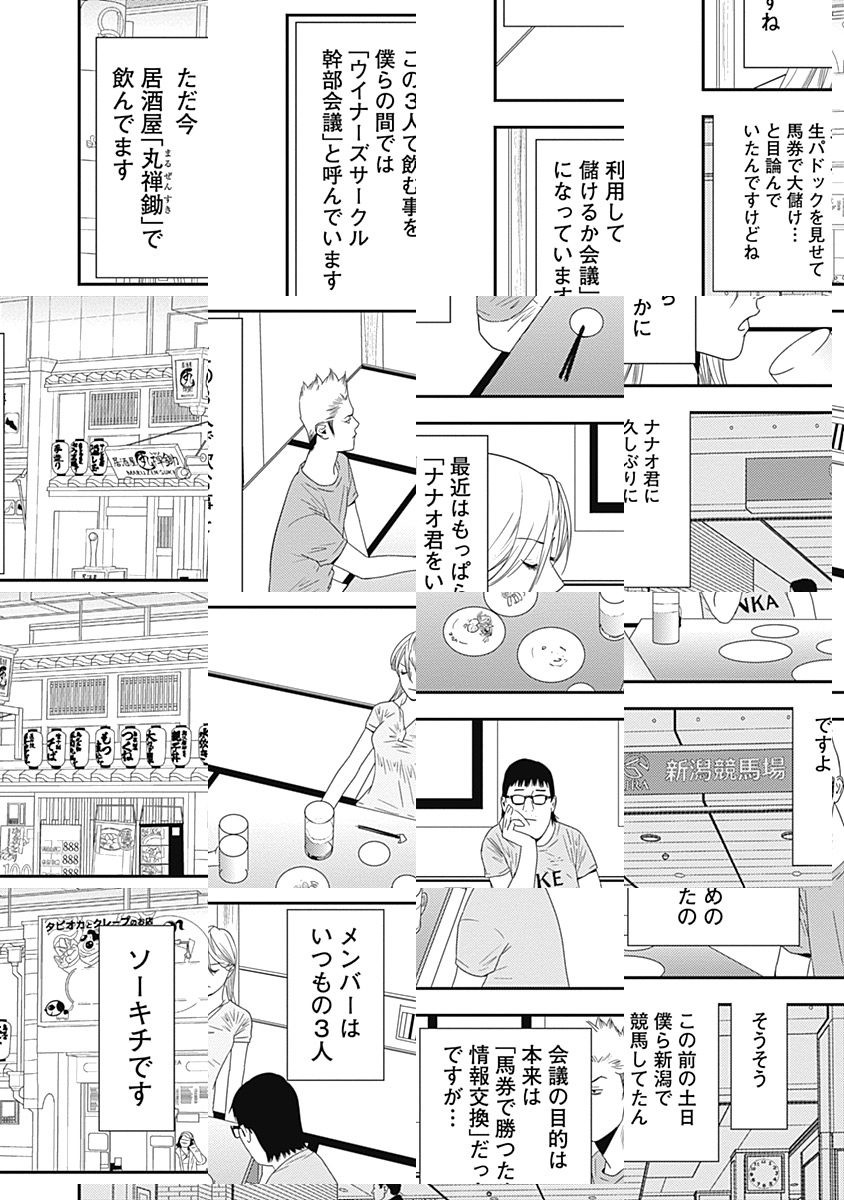 <完結済み>漫画家の夢が砕け失意のどん底にいた山川七雄は、ある日、怪しげな占い師と出会い、お告げをうける。半信半疑のまま、告げられた場所に向かってみると、そこは…競馬場!? 当たったり外れたり、泣いたり笑ったり…。最強の予想軍団“ウイナーズサークル”デイズのスタートですよー!!