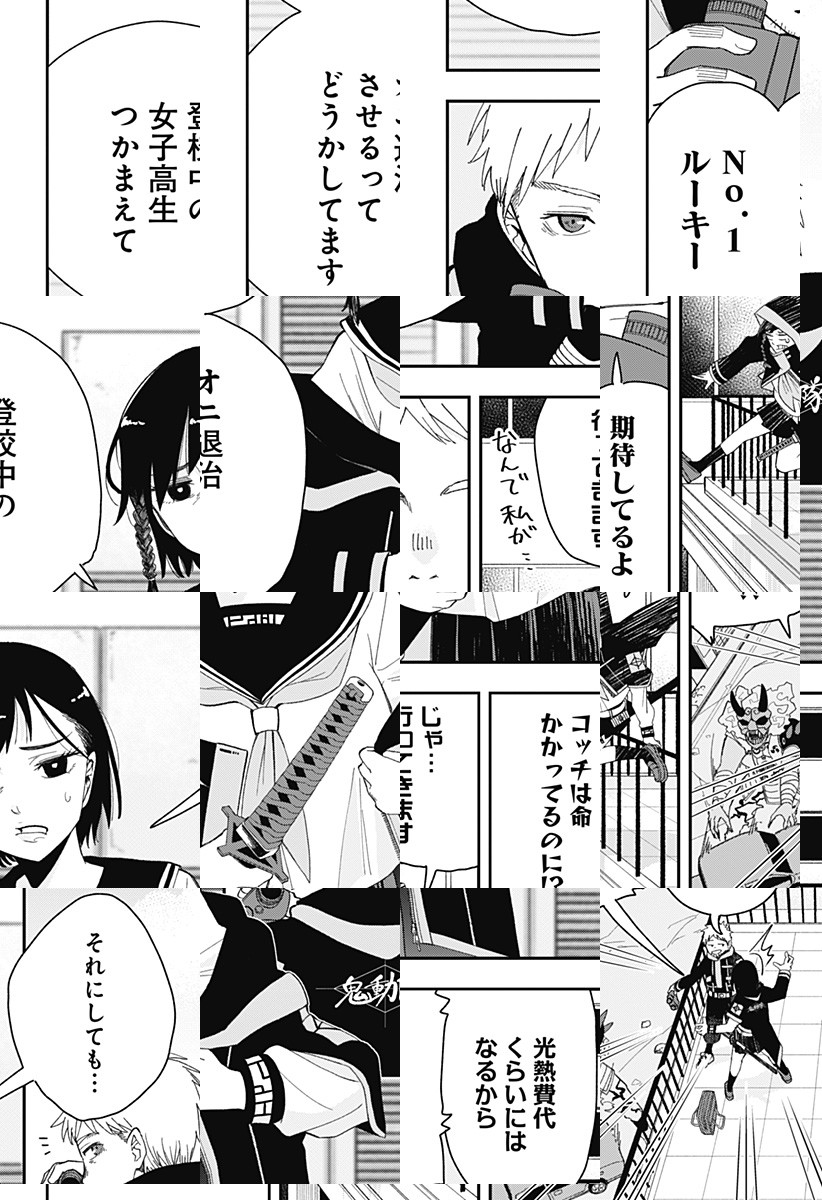 オニ退治専門の国家機関「鬼動隊」の派遣隊員である明智アキラは、本業の女子高生生活を全うしたいと考えている。だが今日も上司に捕まり、オニ退治をさせられることになり…。ゆるゆる女子高生のチルいオニ退治が始まる!!