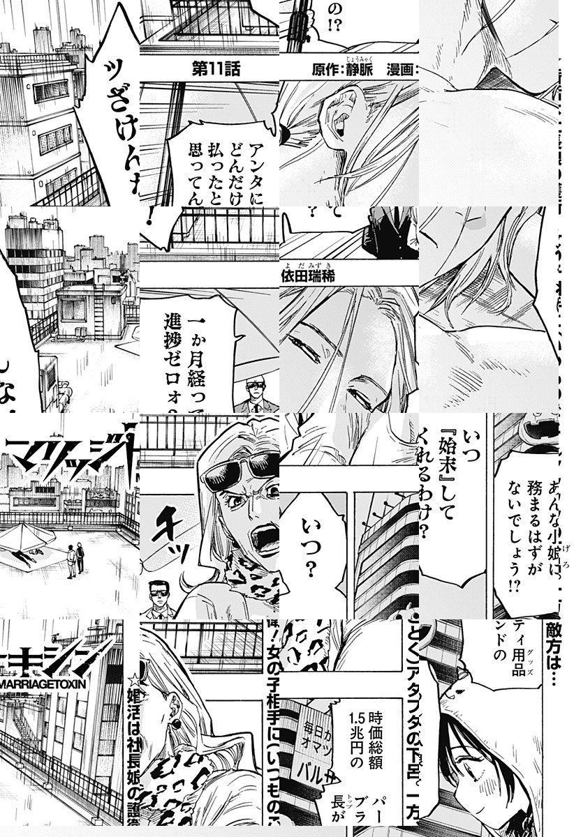 <毎週水曜更新!最新5話無料>2026年4月よりTVアニメ放送開始! 数百年続く殺し屋『毒使い』の青年・下呂。裏稼業に身を置き、女性が苦手な彼にとって結婚はするべきではないものだった。しかし、『毒使い』の血を絶えさせないため実家は彼の妹に対し、強制的に跡継ぎを産ませることを通告。そんな時、下呂は仕事のターゲットだった結婚詐欺師・城崎と出会い…!?「――そんな提案(プロポーズ)、初めて」結婚詐欺師をアドバイザーにした殺し屋の婚活が始まる!目指すは最高の結婚…世界一ハードな婚活バトルアクション!! [JC17巻4/3発売予定]
