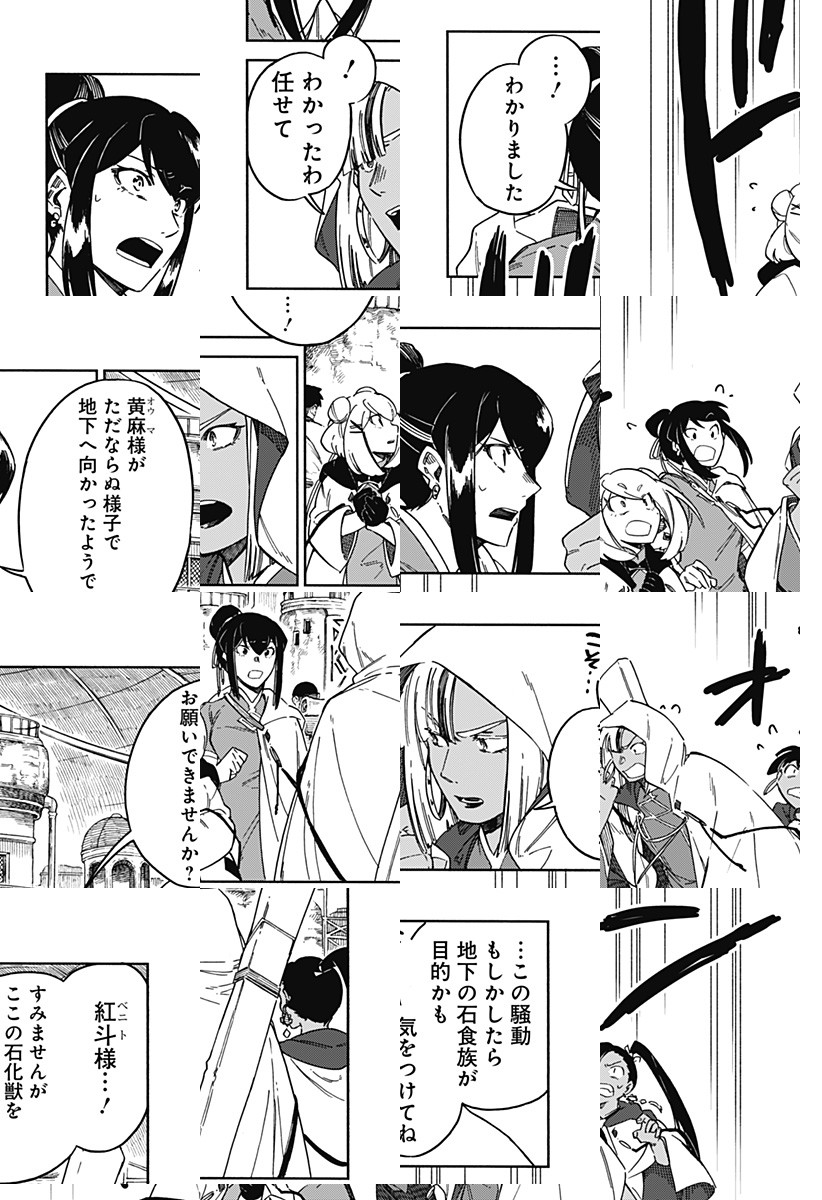 <完結済み>「石」が生活の中心にある世界。とある地下集落を訪ねた鉱石職人の朱星は、左足が石化した少年と出逢う。3本線のピアスをした男を探す彼にはある秘密が…!?磨き磨かれる師弟の、家族を救う旅が始まる! [JC全9巻発売中]