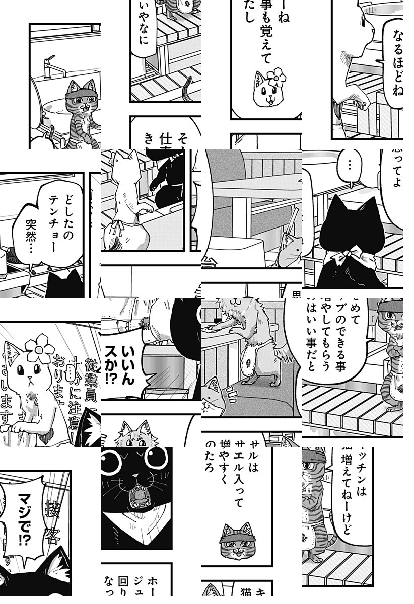 <毎週月曜更新!最新2話無料>アニメ好評配信中! 人間のいない、猫だけが営むラーメン屋に面接に来た珠子。猫の店長に猫好きか聞かれ、珠子は正直に犬派と答えるとあっさり採用される。しかし仕事内容はラーメン屋ではなく、猫のお世話係で…!? [JC13巻発売中]