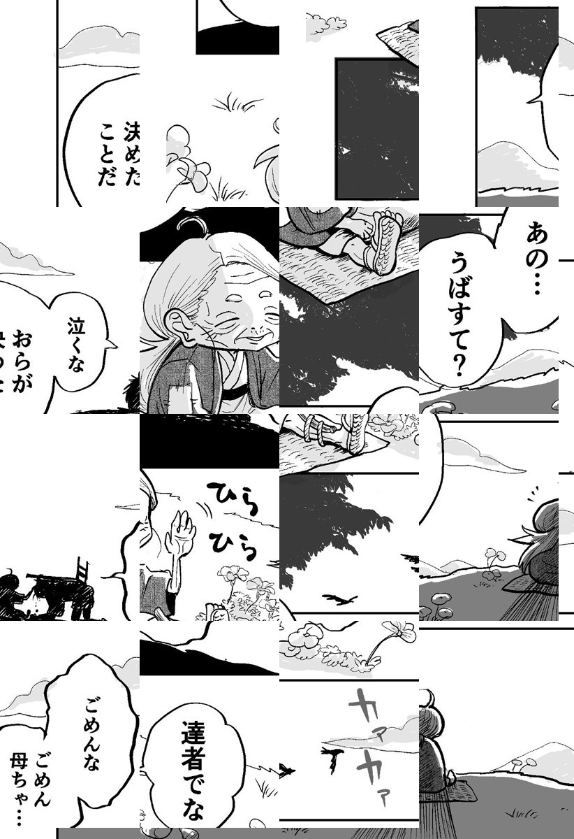 姥捨て山の老母に出会った少年・ヒバナ。彼は老母のために、生活の手助けをするが、それには深い理由があり…