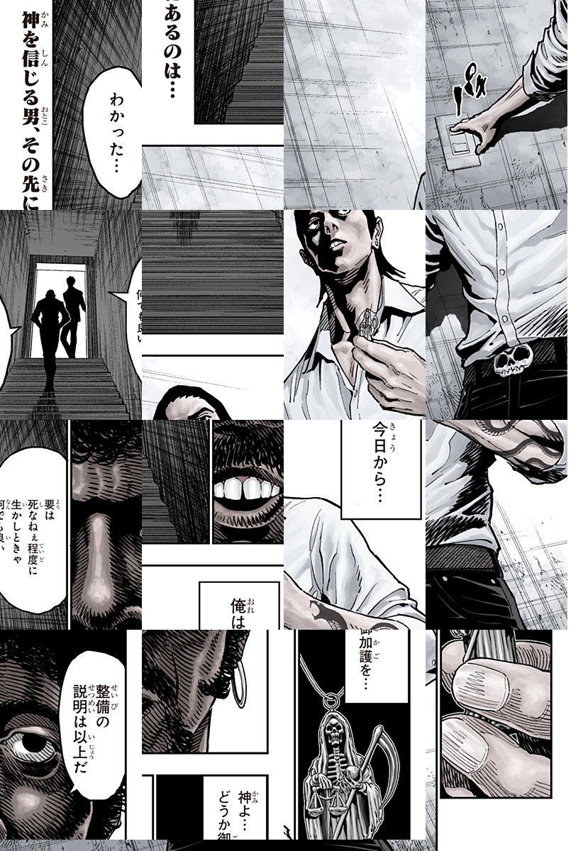 体内で麻薬を精製する巨大な男・フィルターの世話係を依頼された主人公。フィルターと過ごしていくうちに、彼は過去に犯した「罪」に苛まれていく…『ジャガーン』(全14巻)の作画担当が贈るダーク密室劇!!