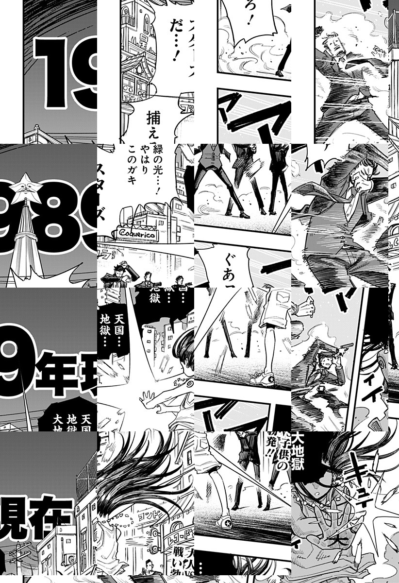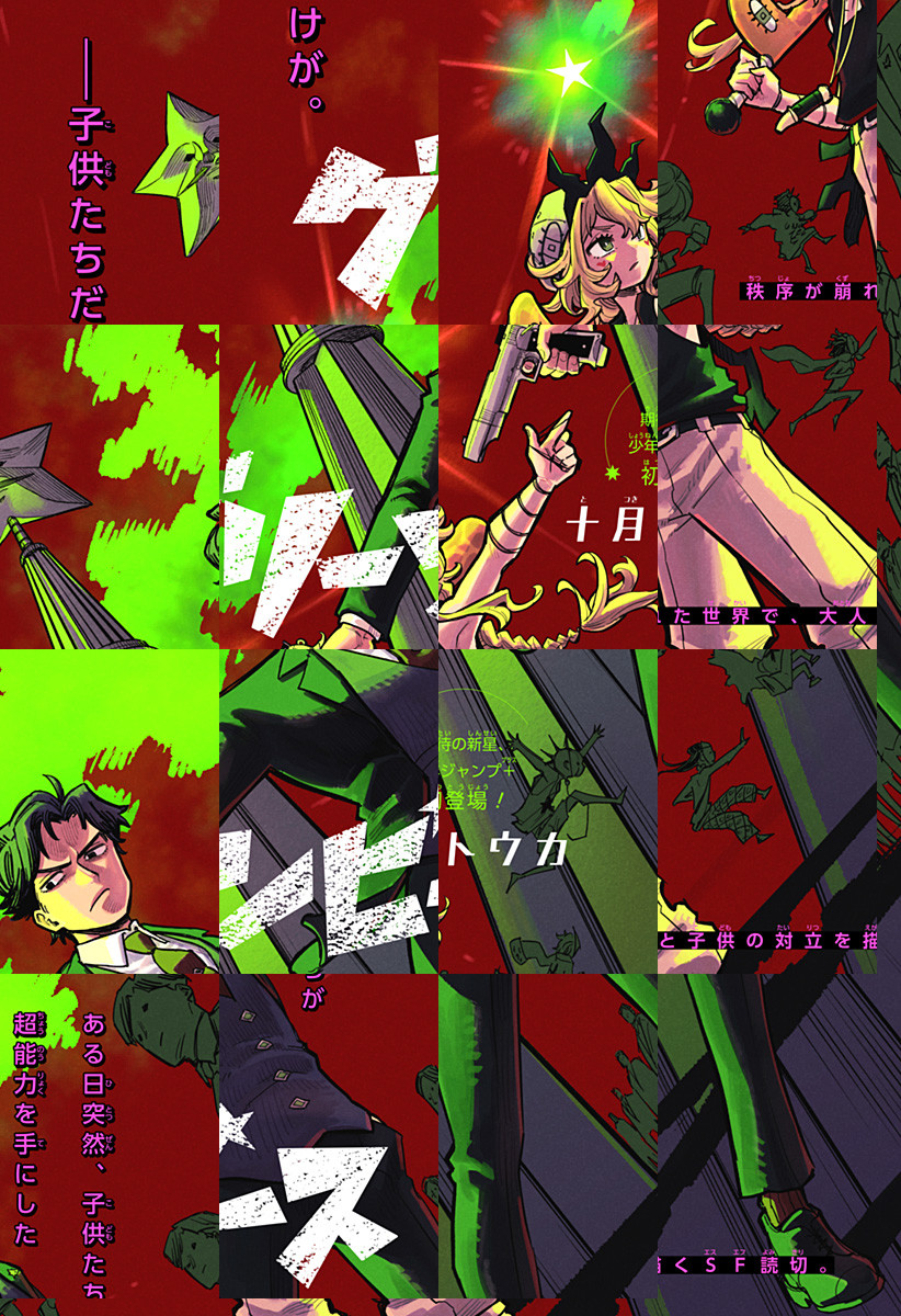 ある日空を横切った緑色の彗星“グリーンピース”。グリーンピースを見た子供は超能力を得て、大人と争っていた。子供によって崩れた秩序を立て直すため、対子供組織“コスモス”に所属する間野は奮闘するが…!?