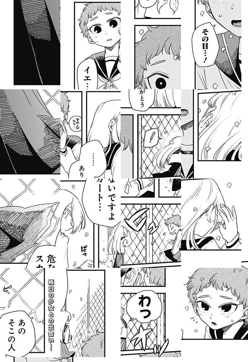 片目が燃えるように赤い“空先輩”は、さくらこちゃんと同居中。しかし先輩は、明日龍に連れていかれるらしい。見つめ合って惹かれ合う出会いの読切59P!