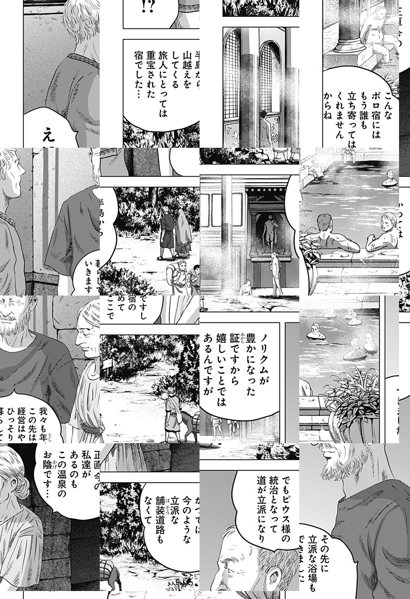 <月一火曜更新>紀元158年、ローマ帝国はアントニヌス・ピウスの統治下20年目。ローマの浴場設計士ルシウスは還暦を迎えて腰痛持ち、妻のさつきは謎の失踪、息子マリウスは理解不能…。さらに彼を悩ませるのはローマの風呂の仕事であったが!? [JC2巻発売中]