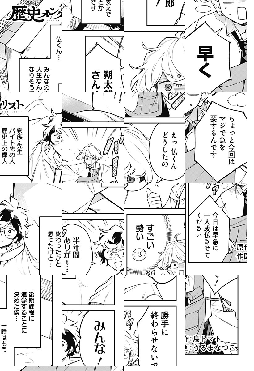 <完結済み>コロナによって世界が変わった――にも関わらず、何も変わらない朔太郎(大学院生)は、突如、現れた仏くんによって【歴史メンタリスト】に任命される!!日本史上の偉人たちの偉業に隠されたダメダメっぷりに心を乱されながらも、朔太郎は彼等のひたむきな姿に自分を見つめ直していく…(はず)。そんな人生応援歴史コメディ開幕!! [JC上下巻発売中]