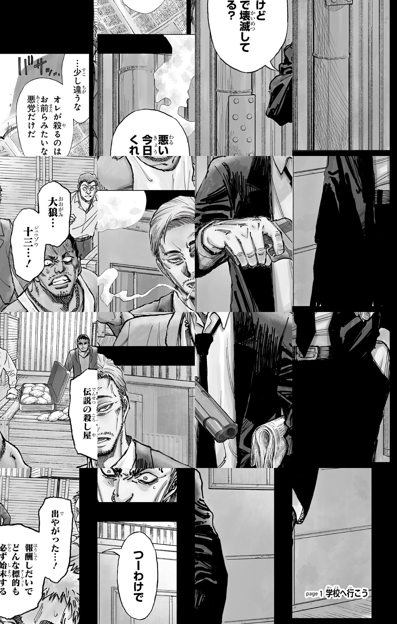 <完結済み>バツイチ子持ちの大狼十三は、子供の頃に組織に拾われた伝説の殺し屋。ある事件で謎の生物兵器に刺されて、中学生の姿になった十三は中学校へ…。中身はオジサン中学生の、学園アサシンやり直しコメディ、スタート!