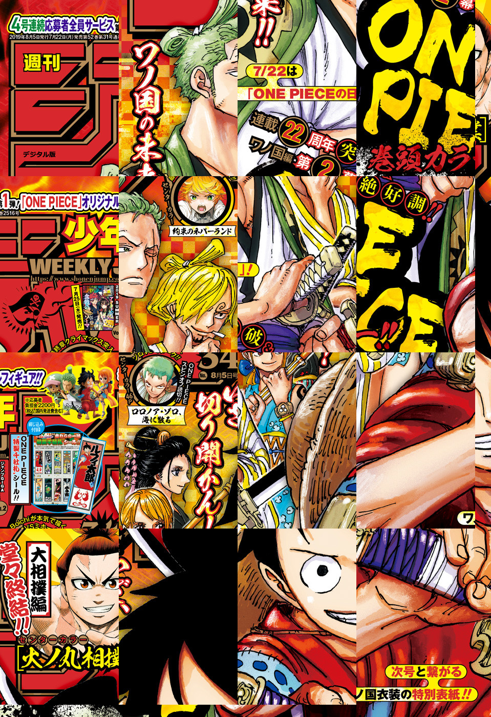 【記事ページ】も毎号収録!/巻頭カラーは、7月22日は「ONE PIECEの日」!!連載22周年突破&ワノ国編超好調記念!!『ONE PIECE』/「Dr.STONE」のBoichi先生超画力炸裂!ゾロVSミホーク名勝負再現!22周年記念特別読切センターカラー46ページ!!『ONE PIECE COVER COMIC PROJECT「ロロノア・ゾロ、海に散る」』/幾星霜にわたる死闘、決着—!堂々完結センターカラー!!『火ノ丸相撲』/絡み合うそれぞれの思惑!最終章クライマックス突入記念センターカラー!!『約束のネバーランド』/【電子版限定特典】『鬼滅の刃』のフルカラー版!※デジタル版では、綴じ込み付録・シリアルコードなど一部未収録となっている内容があります。※収録されている懸賞などは紙版の企画であり、デジタル版では一部ご応募頂けないものがございます。