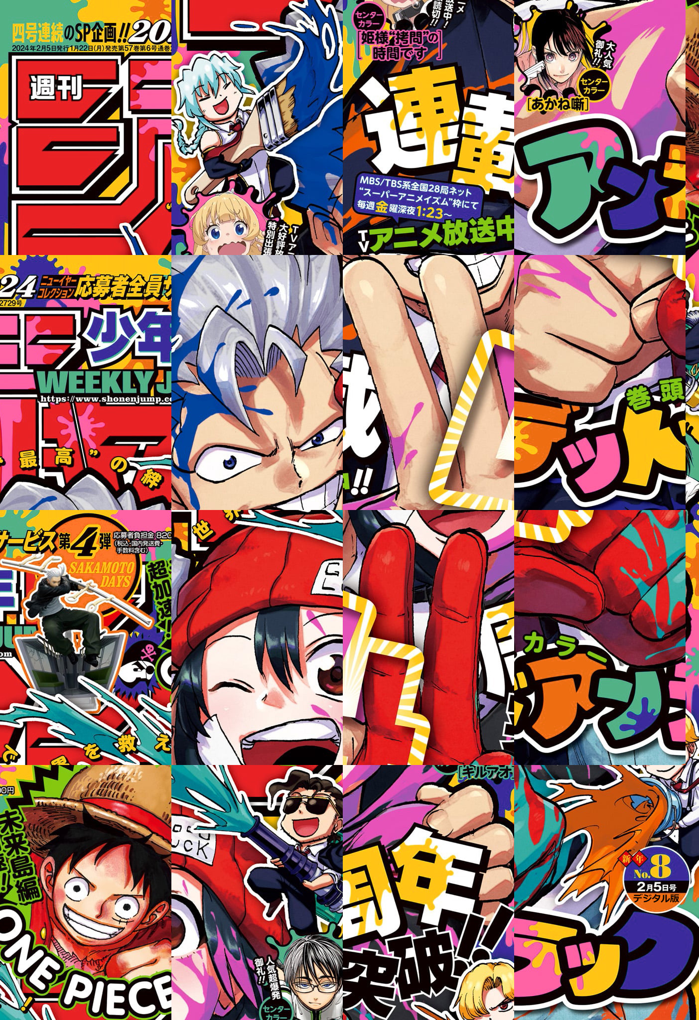 ※「ルリドラゴン」は休載となります。【記事ページ】も毎号収録!/連載4周年突破&テレビアニメ絶好調!巻頭カラー!!『アンデッドアンラック』/VS乙姫舞白熱!人気爆発御礼センターカラー!『キルアオ』/ジャンプ+連載中のやさしい拷問ファンタジー!特別出張読切センターカラー!『姫様"拷問"の時間です』/二ツ目推薦編、大人気御礼センターカラー!!『あかね噺』/※デジタル版では、綴じ込み付録・シリアルコードなど一部未収録となっている内容があります。※収録されている懸賞などは紙版の企画であり、デジタル版では一部ご応募頂けないものがございます。